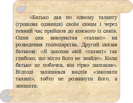 Кожна людина від народження обдарована, але чи розвине вона свій талант – залежить від обставин життя і навчання, а також від її бажання, бо талант можна розвинути, а можна «закопати».