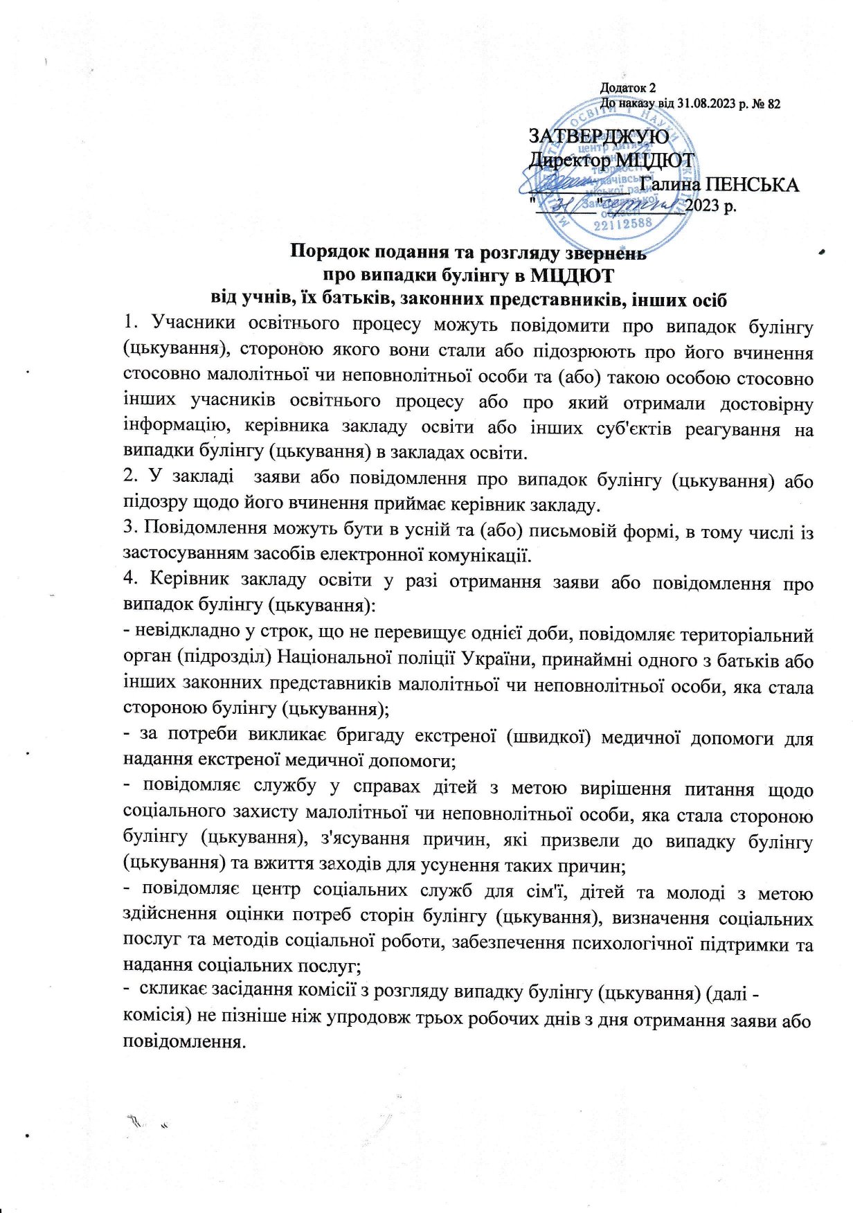 » Порядок подання та розгляду звернень про випадки булінгу в закладі